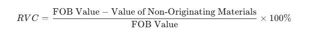 - Product Specific Rules (PSR): For some specific goods, there may be separate rules of origin that specifically regulate the production process or the proportion of originating materials used, instead of applying the usual CTC or RVC criteria.
